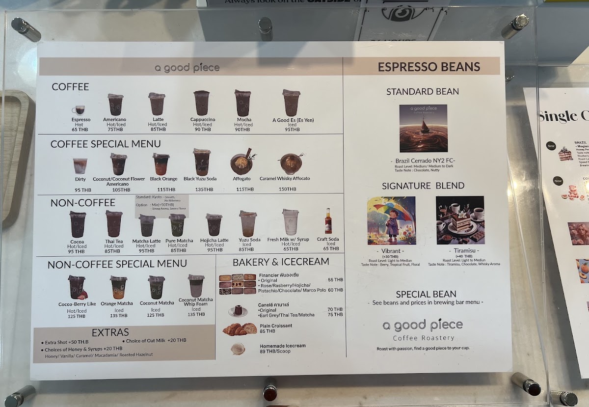 Welcome to a good piece Coffee, a charming coffee shop nestled in the heart of Ratchaburi, Thailand. Located at 156 m.10 Soi Witsawa Senanikom, this cozy café is renowned for its exceptional coffee crafted with passion and expertise. The owner, a dedicated barista, ensures each cup reflects a commitment to quality, using premium beans from Chiangmai that deliver fruity acidity and brightness.